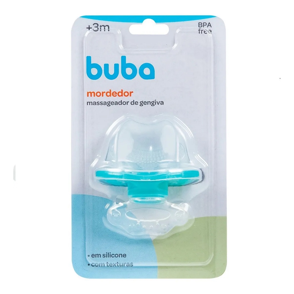 Mordedor com Massageador de Gengiva Buba Baby Azul e Verde com 1 unidade