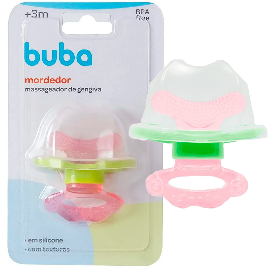 Chupeta Mordedor Com Massageador De Gengiva Para Bebe Buba Rosa