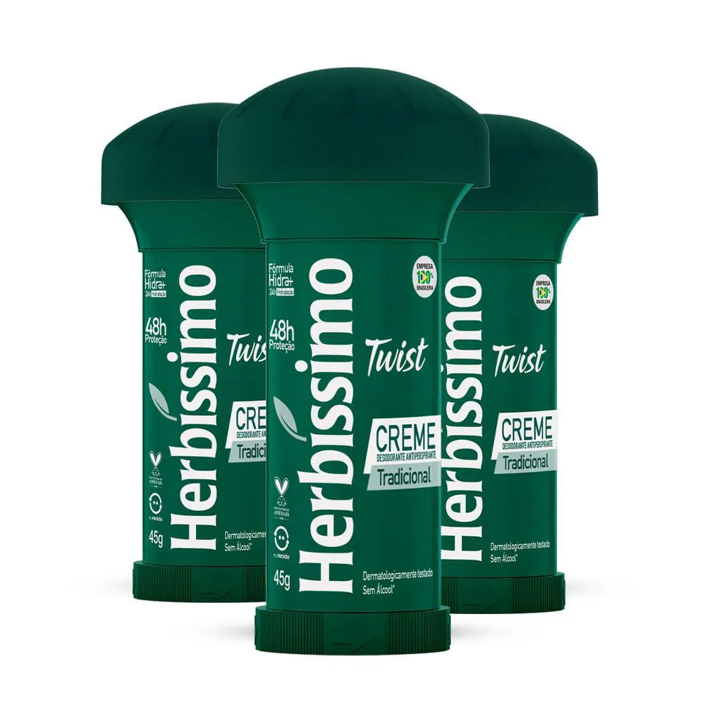 KIT DESODORANTE TWIST ANTITRANSPIRANTE TRADICIONAL HERBISSIMO 45G C/3 UNIDADES