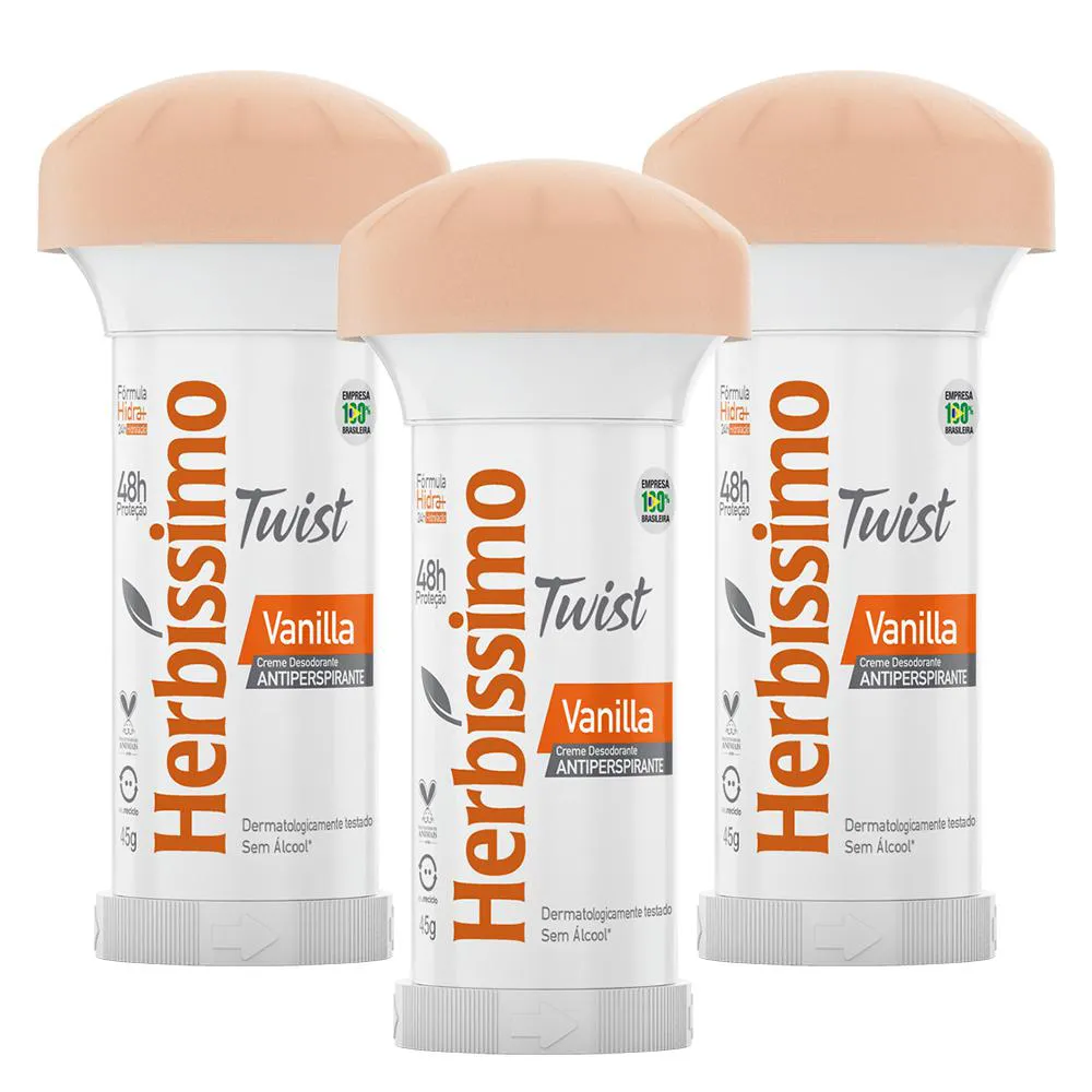 Kit Desodorante Twist Antitranspirante Vanilla Herbissimo 45g c/3 unidades
