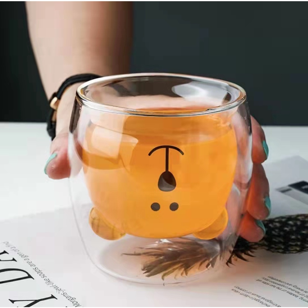 Caneca, Copo, De urso, Porco, Panda dupla camada de vidro vazado
