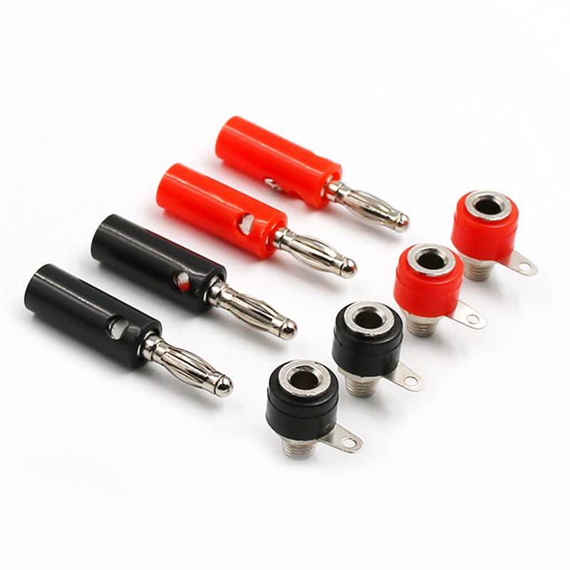 4pcs Adaptador DIY 4mm Banana Plug + Socket Connectors Fêmea Conector De Inserção Macho Niquelado