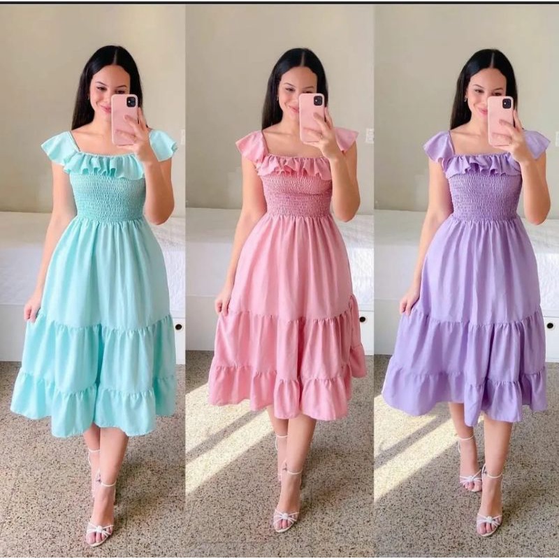 Vestido Femenino Godé Babado Princesa Luxo Midi Moda Evangélica