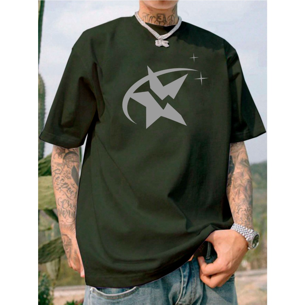 Camiseta Masculina Oversized Streetwear Estampa Broken Star Bordado Estrela Quebrada Skate Old School Blusa Manga Curta