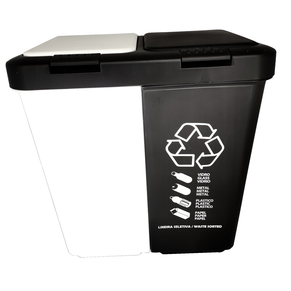 Lixeira Dupla 20 litros plástica com tampa branca e preto seletivo orgânico lixo separado