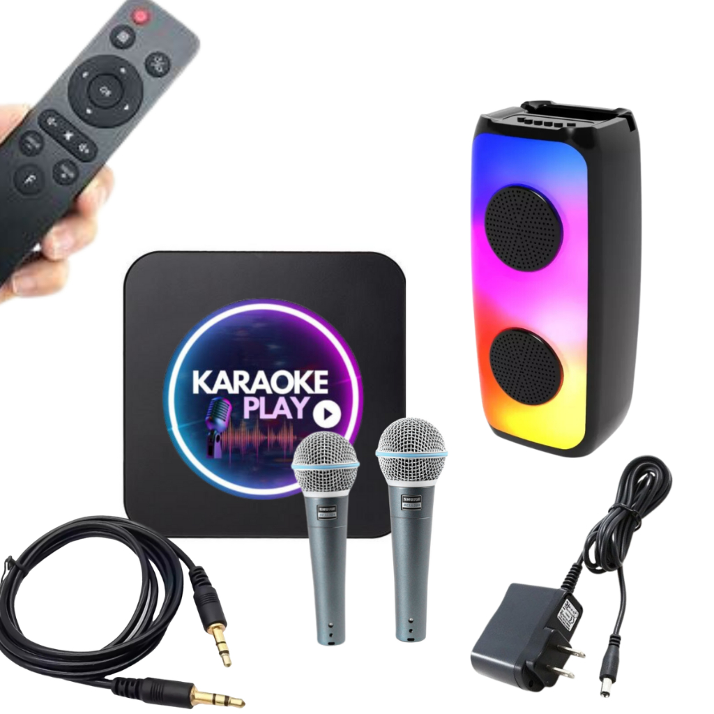 Karaoke Box Pontuação + Acesso 12 Mil Músicas + 2 Microfones + Caixa de Som Completo
