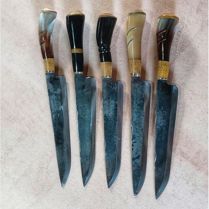 Facas Artesanal Churrasco Forjada Gaúcha 10 pol. Aço Inox 3mm Cabo de Chifre Personalizada
