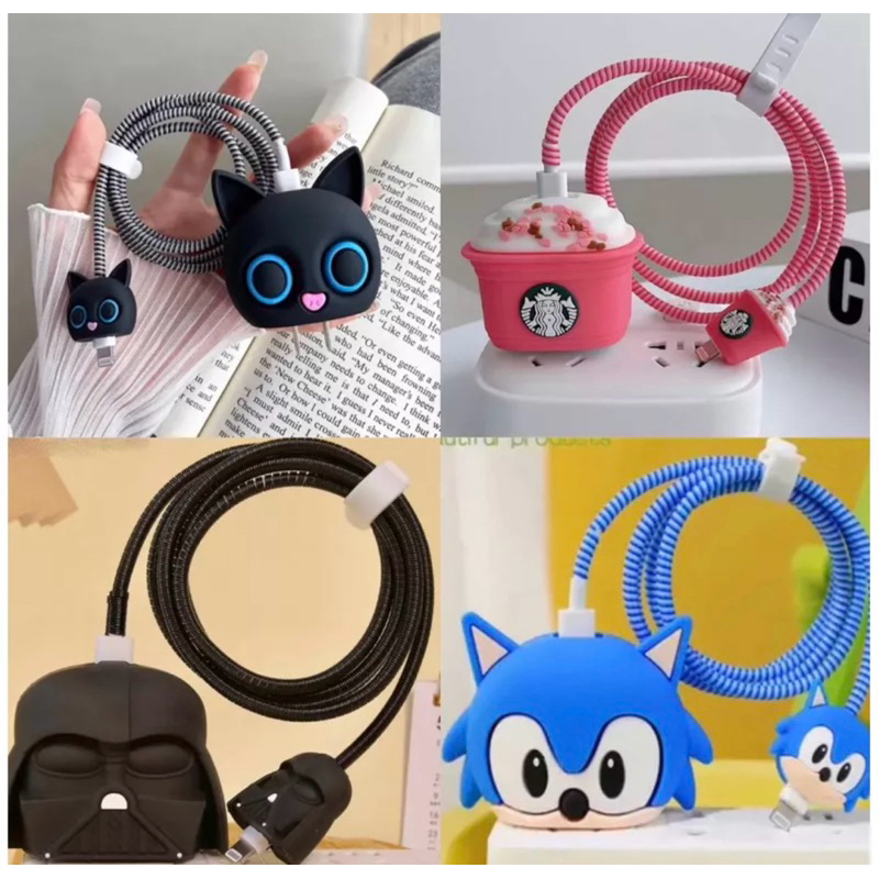 Kit Com 3 Protetor de cabo protetor de fonte e fio capinha para Carregador 3 peças Personagens