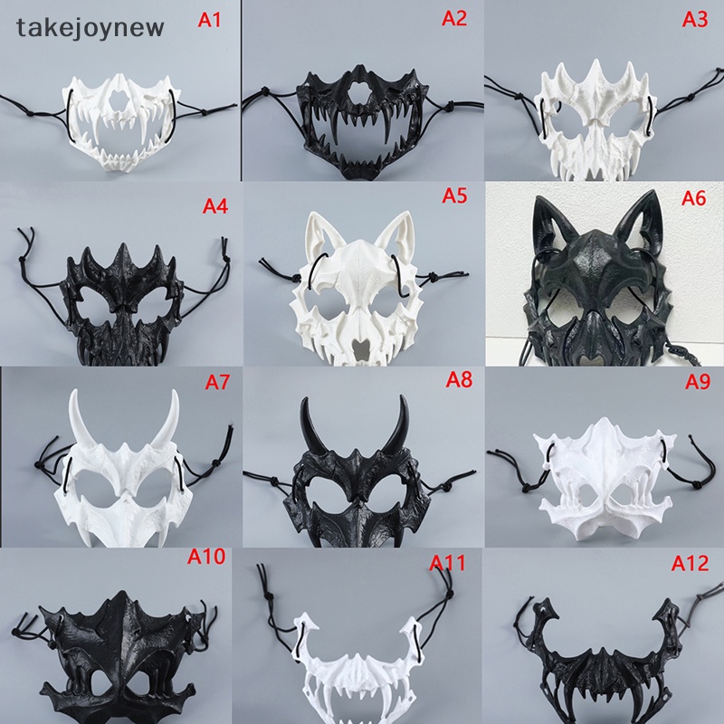 [takejoynewBR] Máscara De Crânio De Festa Demoníaca Dentes Longos Esqueleto Meia Cara Dragão Lobo Tigre Houjuu Nue Cosplay Traje De Halloween Tbr