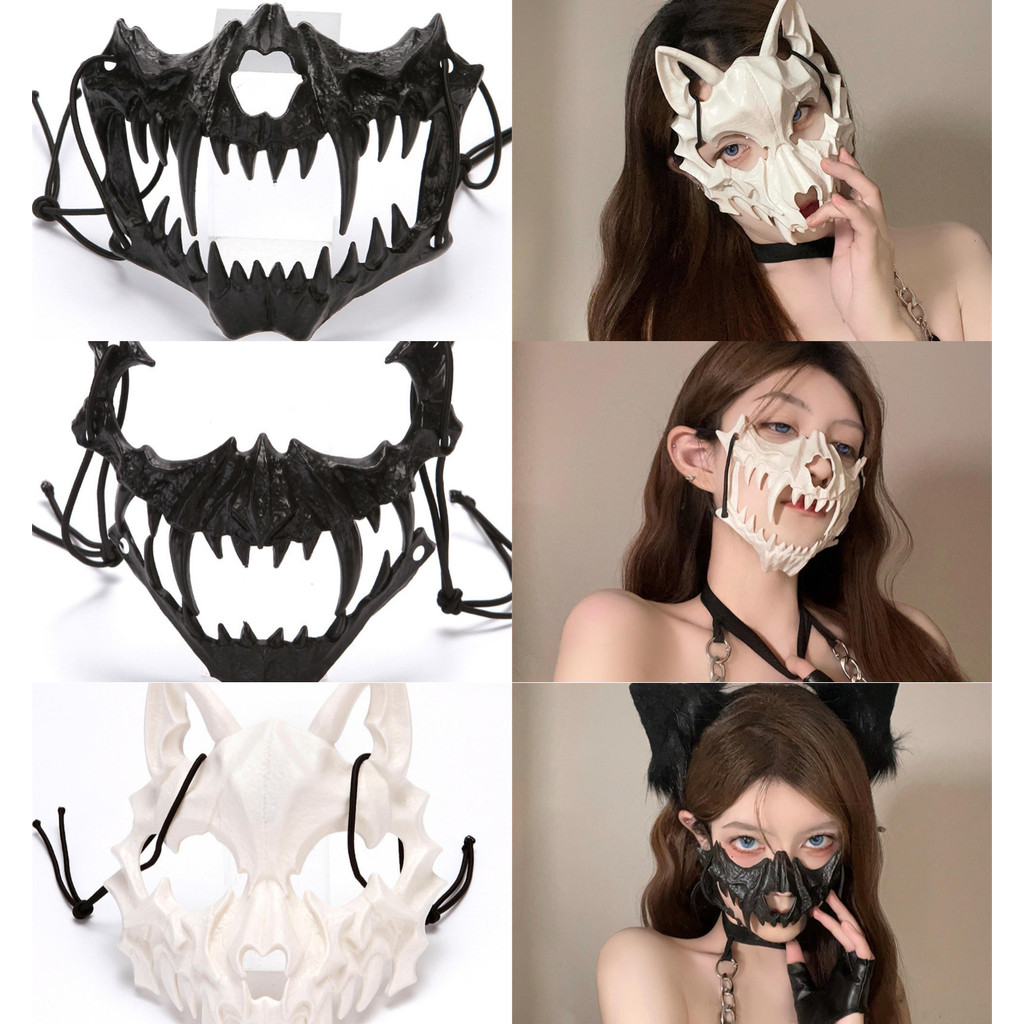 [Máscara De Crânio De Festa Dentes Longos Esqueleto Demoníaco Meia Cara Dragão Lobo Tigre Houjuu Nue Cosplay Traje De Halloween Boas Adereços
