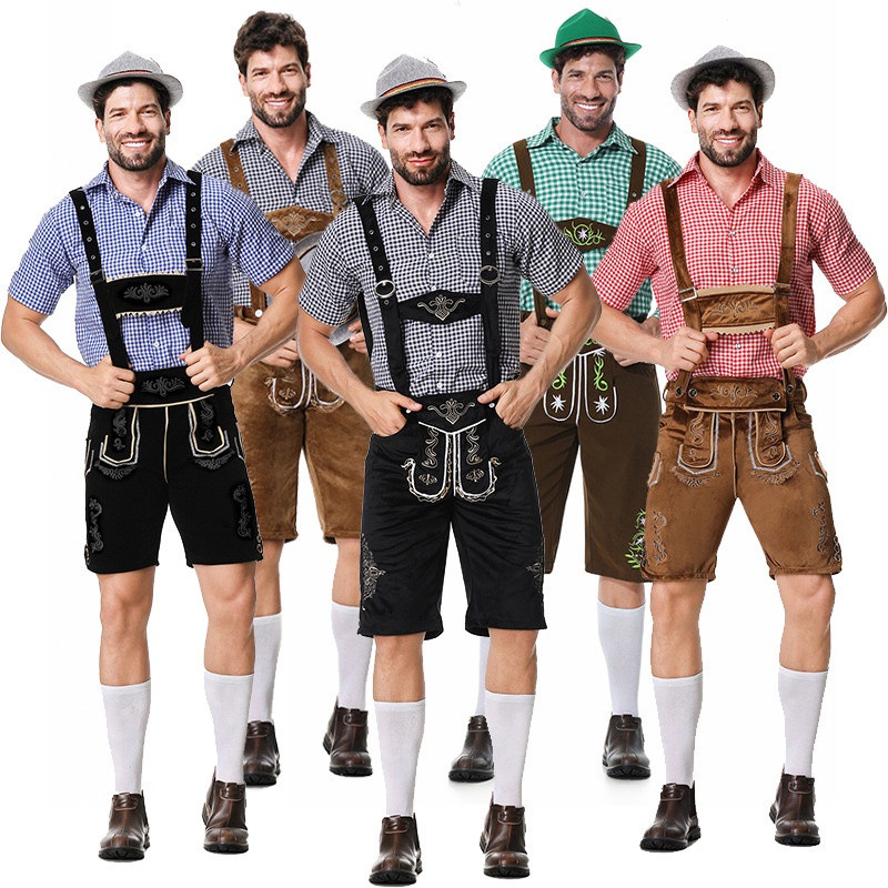 Nova Chegada Roupas do Festival de Cerveja de Munique Fantasias Alemãs do Oktoberfest Jaqueta Xadrez Calças com Alças Ma