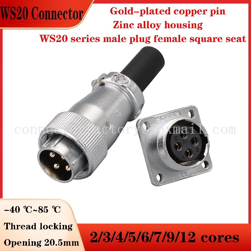 Conector De Aviação WS20 2-3-4 Núcleo 5-6-7-9-12 Furo De Pino TQZ Assento Quadrado Fêmea Macho Rebite Metálico De Cobre , À Prova D'água E De Poeira anti Vazamento