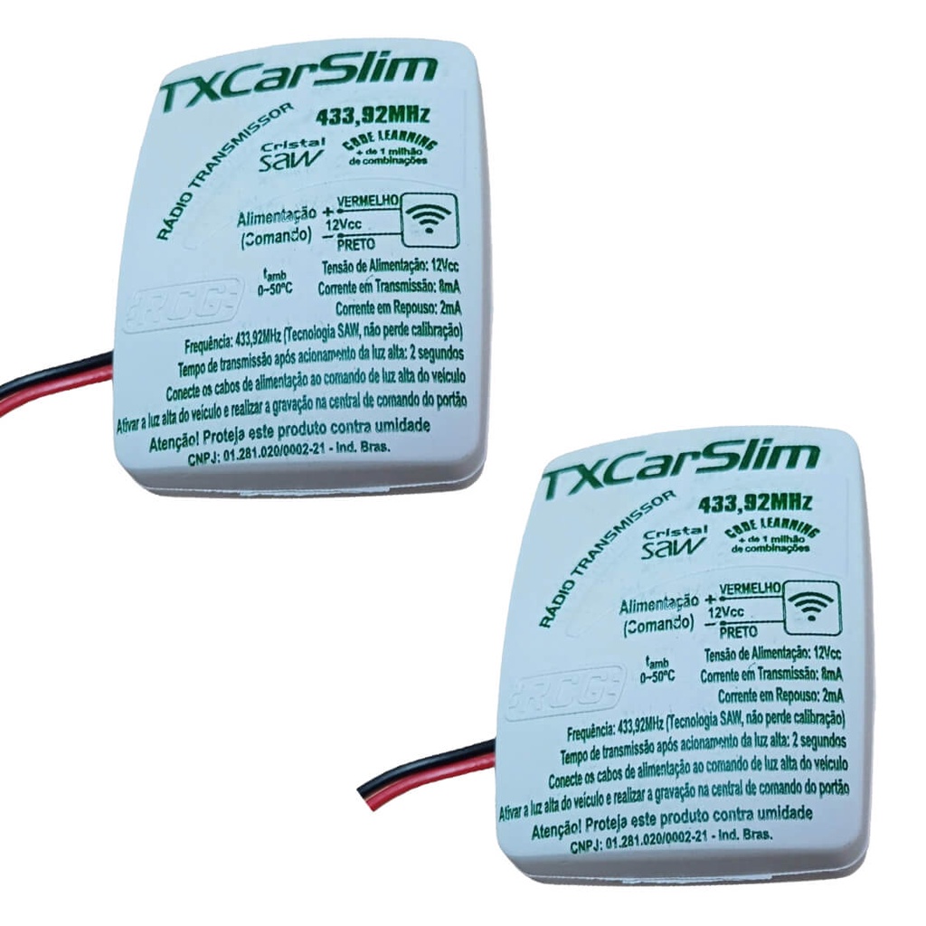Kit 2 Controle De Portão Eletrônico Farol Tx Car Garen Rcg - 433Mhz À Prova D'água - H-Tronic