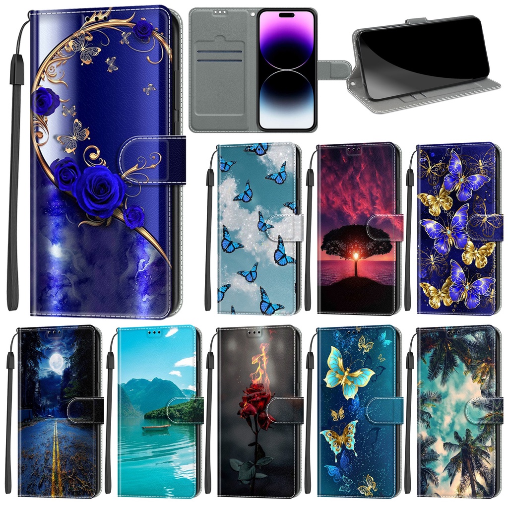 Padrões Coloridos Estojo De Couro Para Moto E13 G13 G23 G32 G53 G72 G73 Porta-Cartões