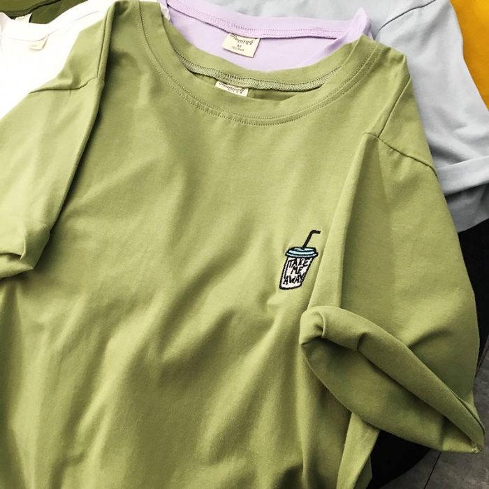【 2022 】 Camiseta De Manga Curta De Algodão Feminina Solta Moda Coreana Ins Super Fire Estampa Simples Estudante Grande Feminino