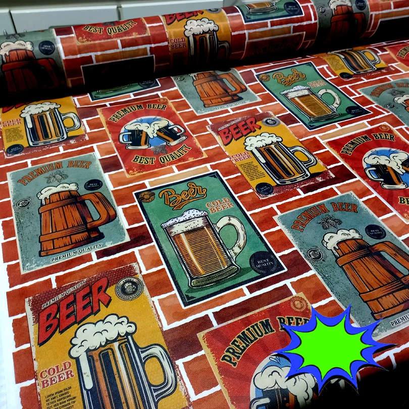 TNT Estampado Boteco Retrô Chopp Caneca Cerveja 2,00m X 1,40m.Tipo Tecido, Para Festas, Decoração, ou como Papel de Parede.