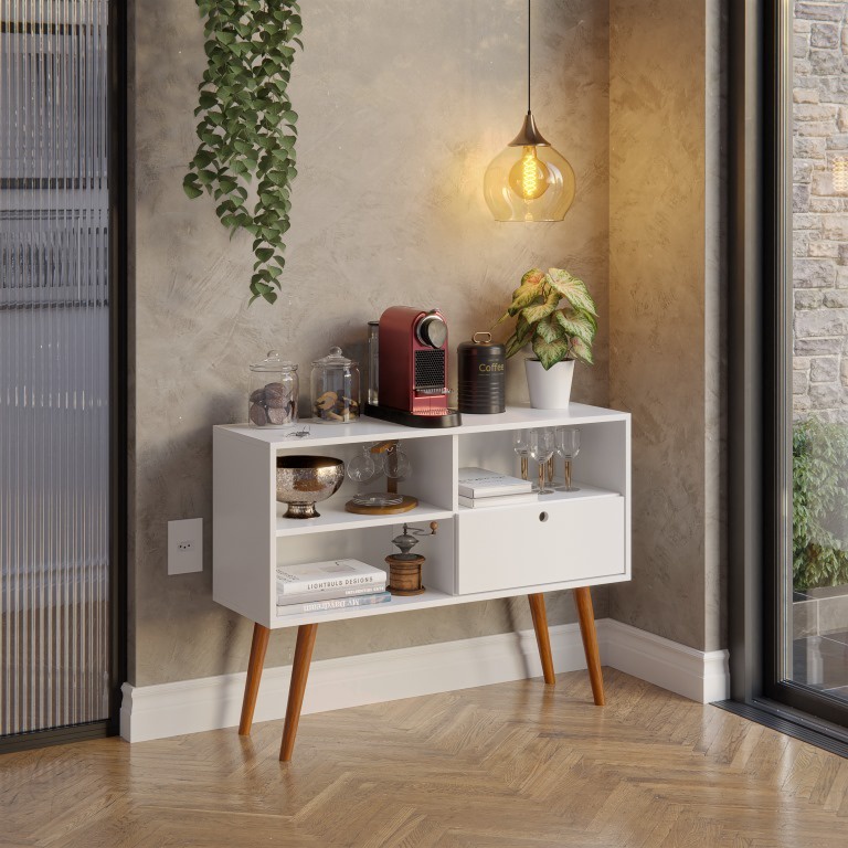 Aparador Retrô Pés Palito Decorativo Buffet para Sala de Estar Cozinha Recepção Hall de Entrada Cantinho do Café Monaco Madeira Maciça Eucalipto
