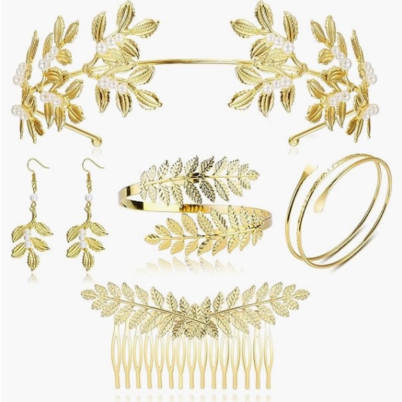 jiarenitop Conjunto De Acessórios De Deusa Grega Para Mulheres Coroa De Ouro Romana Pulseira Grego Bracelete De Braço br