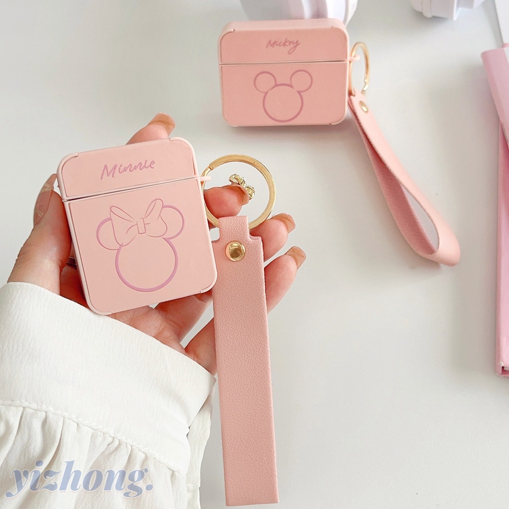 Caixa Para Airpods Pro 2 3 1 Bonito Desenho Animado Mickey Minnie Mouse Pink PU Leather Square TPU Capa Fone De Ouvido Com Alça Anti-Perda Protetora Sem Fio
