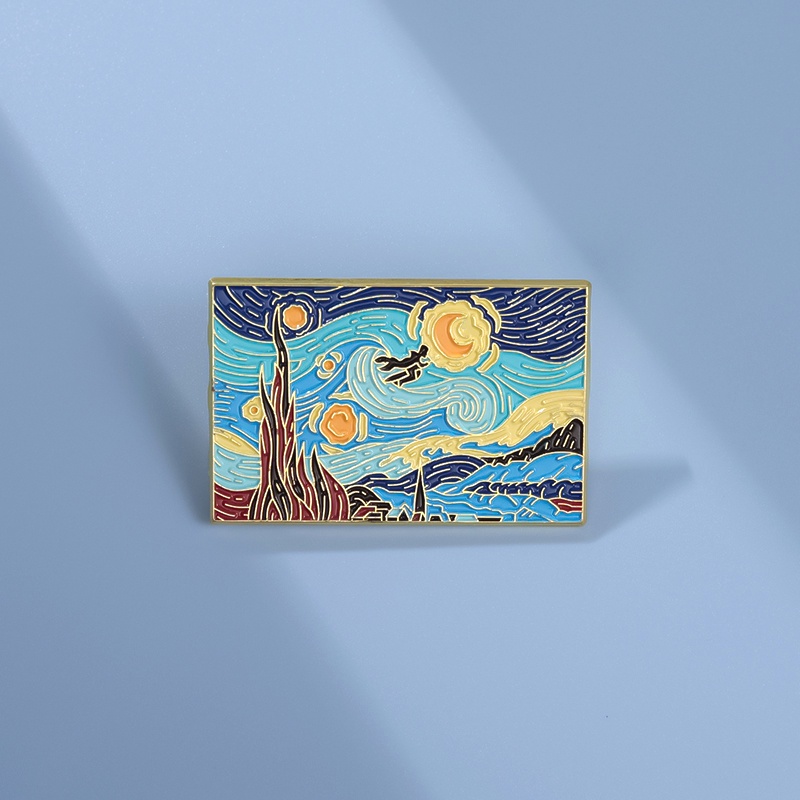 Van Gogh Art Pintura A Óleo Esmalte Pins Starry Night Brooch Pin Lapela Crachás Cartoon Jóias Presente Para Amigos
