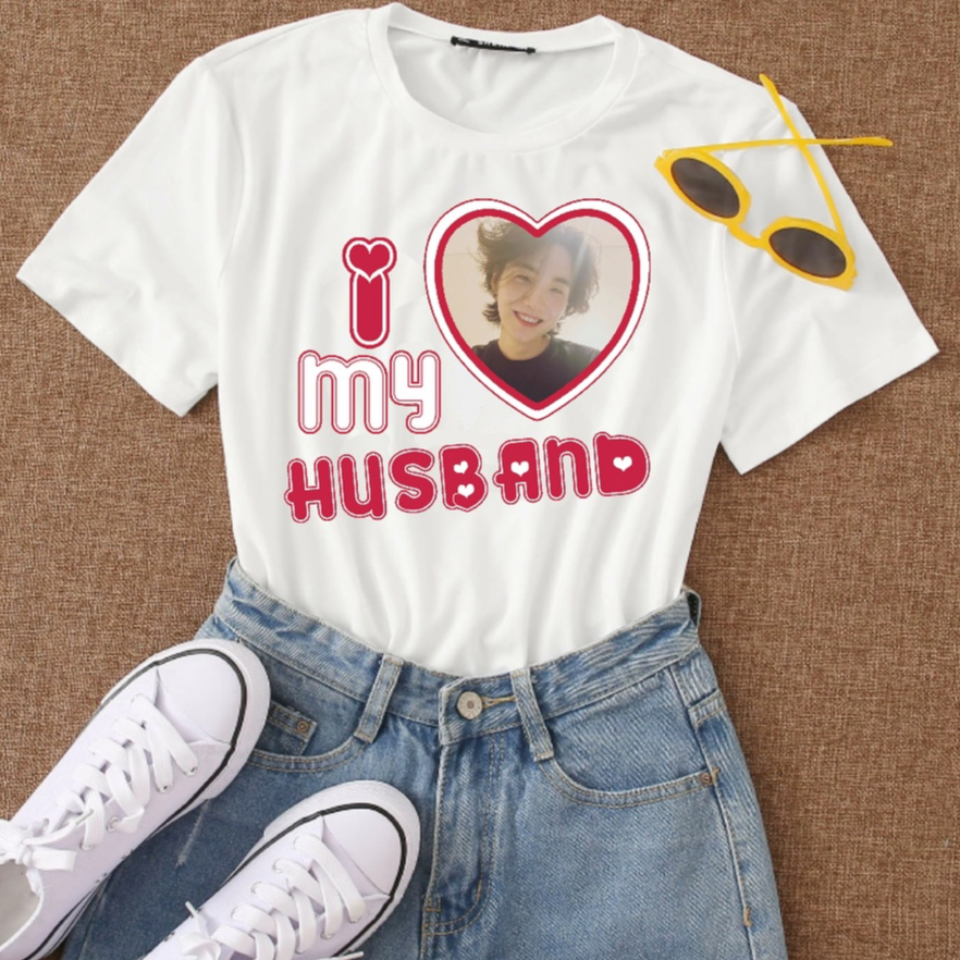 Camiseta Personalizada BTS I Love My Husband Suga Of BTS agustd K Pop Eu amo meu Marido Unissex