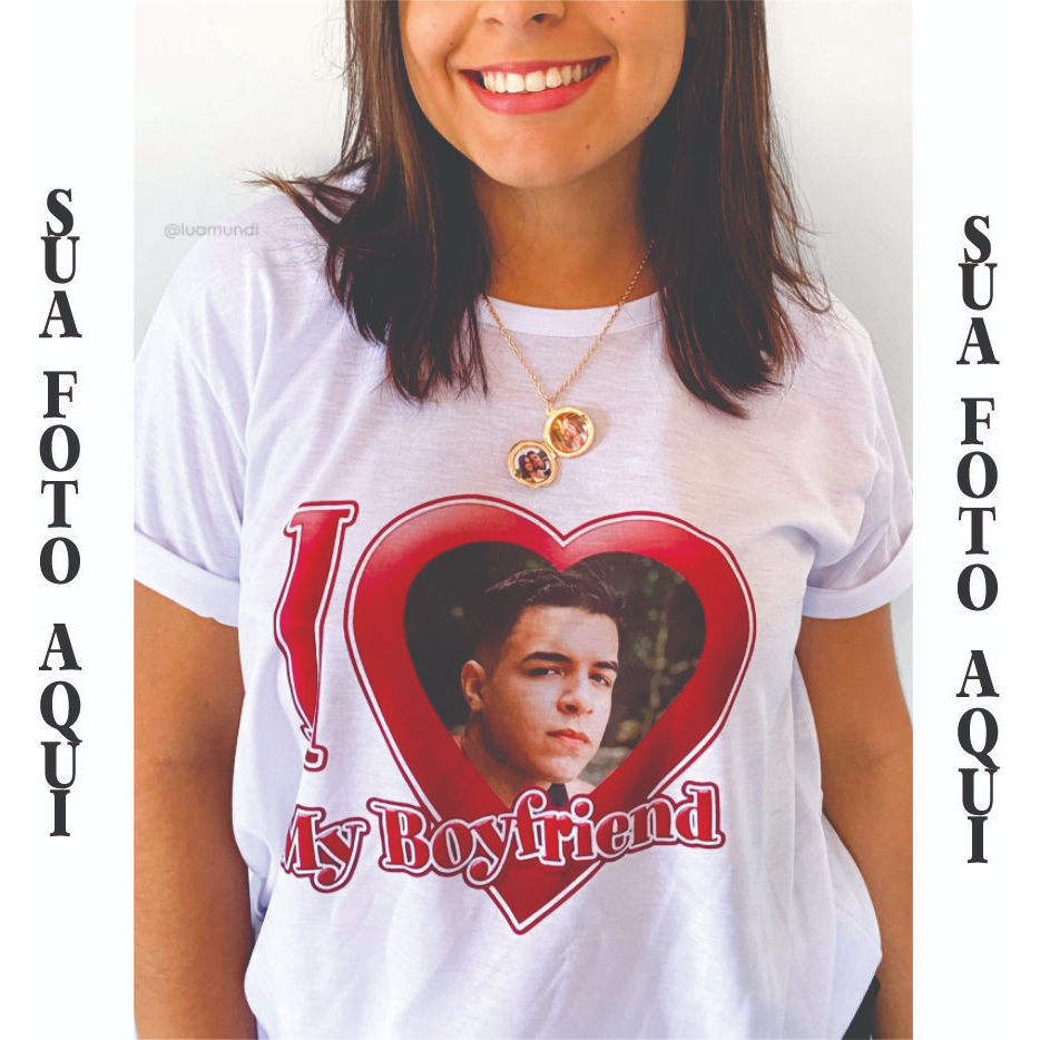Camiseta Personalizada I love My Girlfriend I love My Boyfriend / Eu amo minha namorada, Eu amo meu namorado com foto promoção