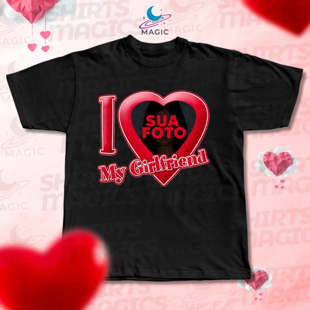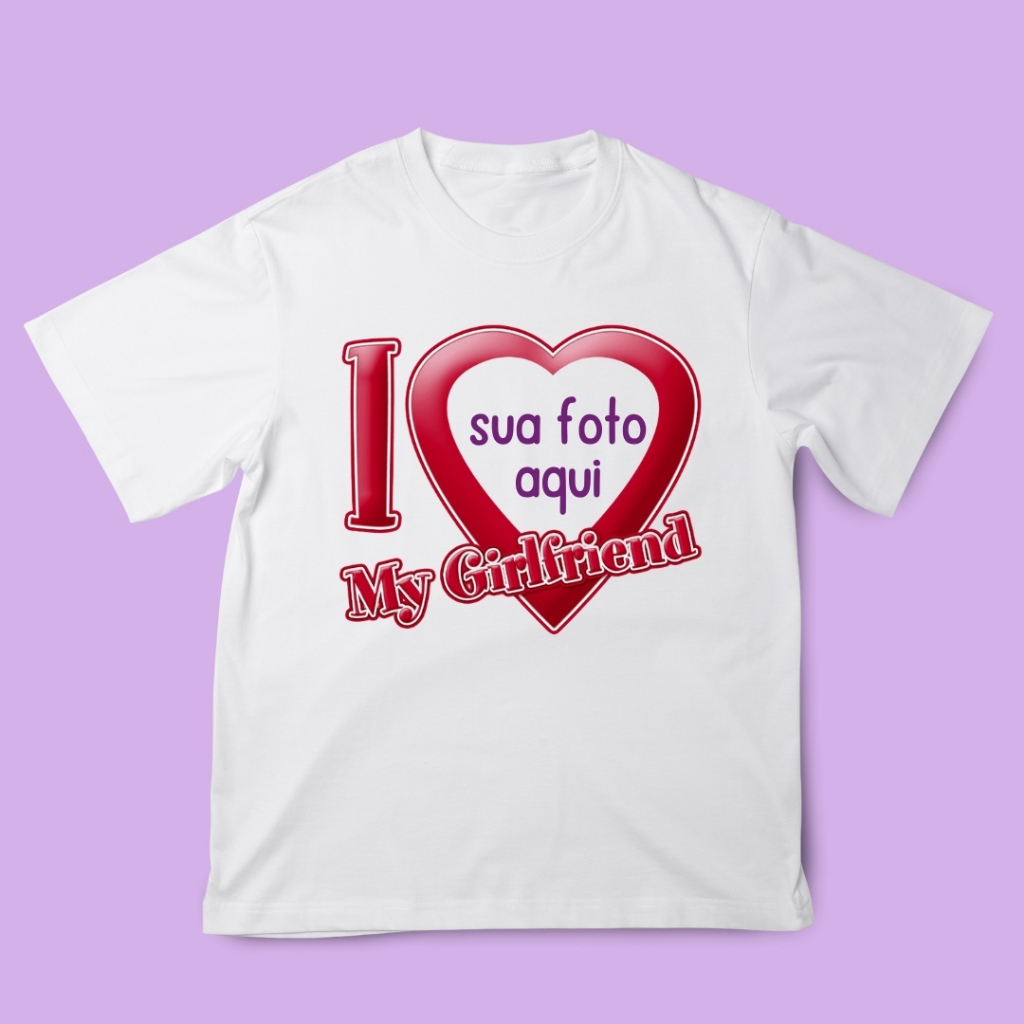Camiseta Personalizada com Foto Coração I LOVE MY GIRLFRIEND - Eu Amo Minha Namorada 100% Algodão