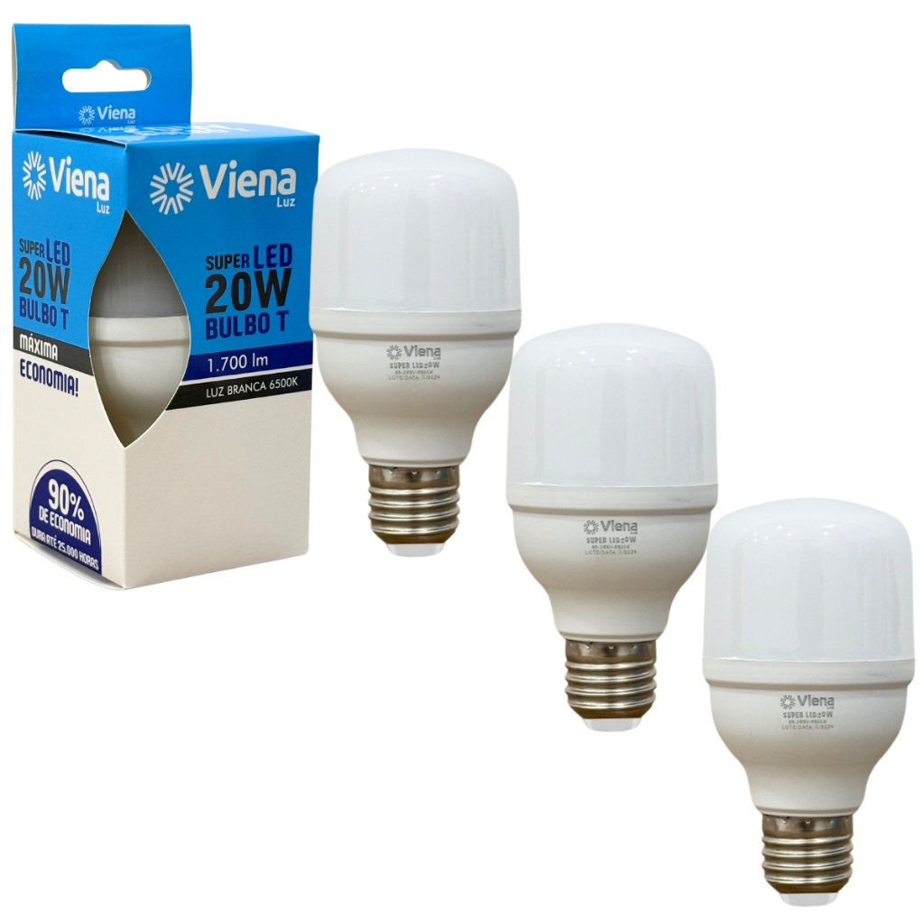 Kit 3 Lâmpadas Bulbo Led 20W 6500k Branco Frio Bivolt E27 Inmetro Econômica