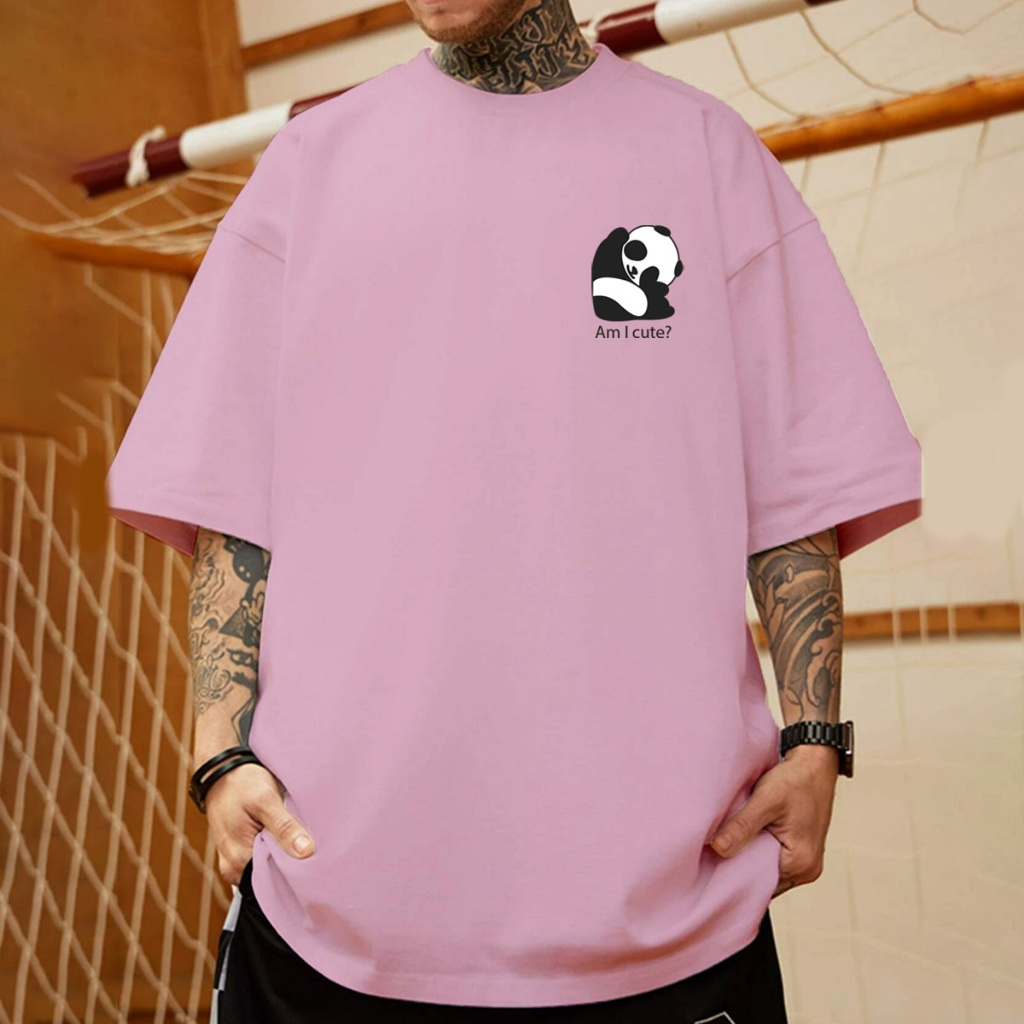 Camiseta Masculino AMICUT Tecido Macio T-Shirt Cor Rosa Bebê Gola redonda Oversized Longo Bordado Longline homem Manga 3/4 Estampado LifeStyle Larga Garoto Manga Curta