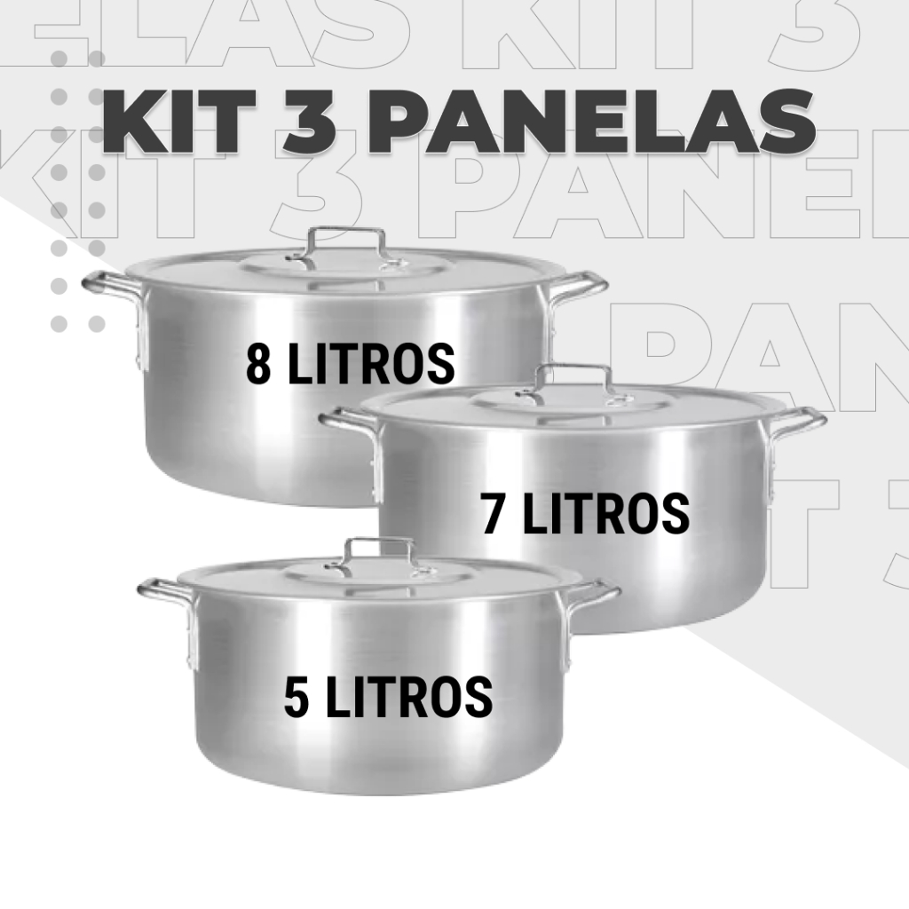 Kit Panela de Alumínio para Feijoada 3 Peças Caçarola - Jogo de Panelas Grande para Caldo