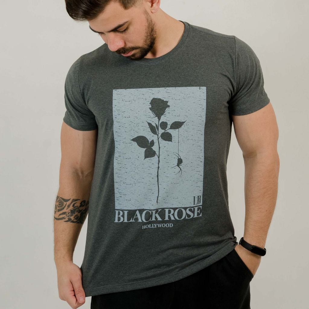 Camiseta Masculina Estampada Black Rose Gola Redonda em Malha de Algodão Premium