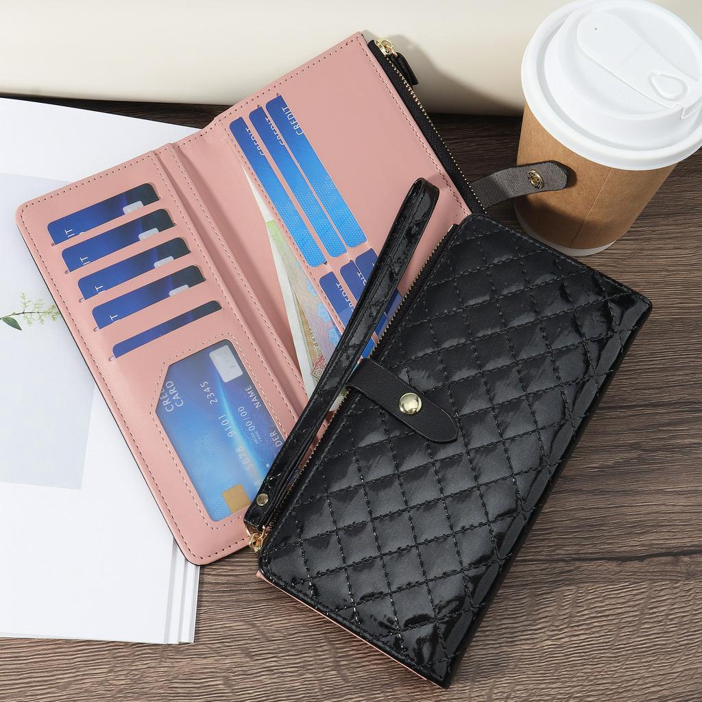 slot Elegante Para Cartão Dobrável Em Couro PU Feminino E Bolso Com Zíper , Dormitório Escolar Bolsa De Material De Estudo De Volta À Escola