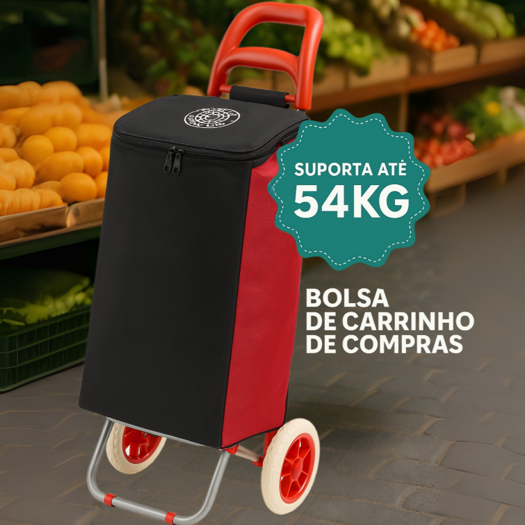Bolsa para Carrinho de Feira 54L em Nylon Reforçado — Tampa com Zíper | Várias Cores