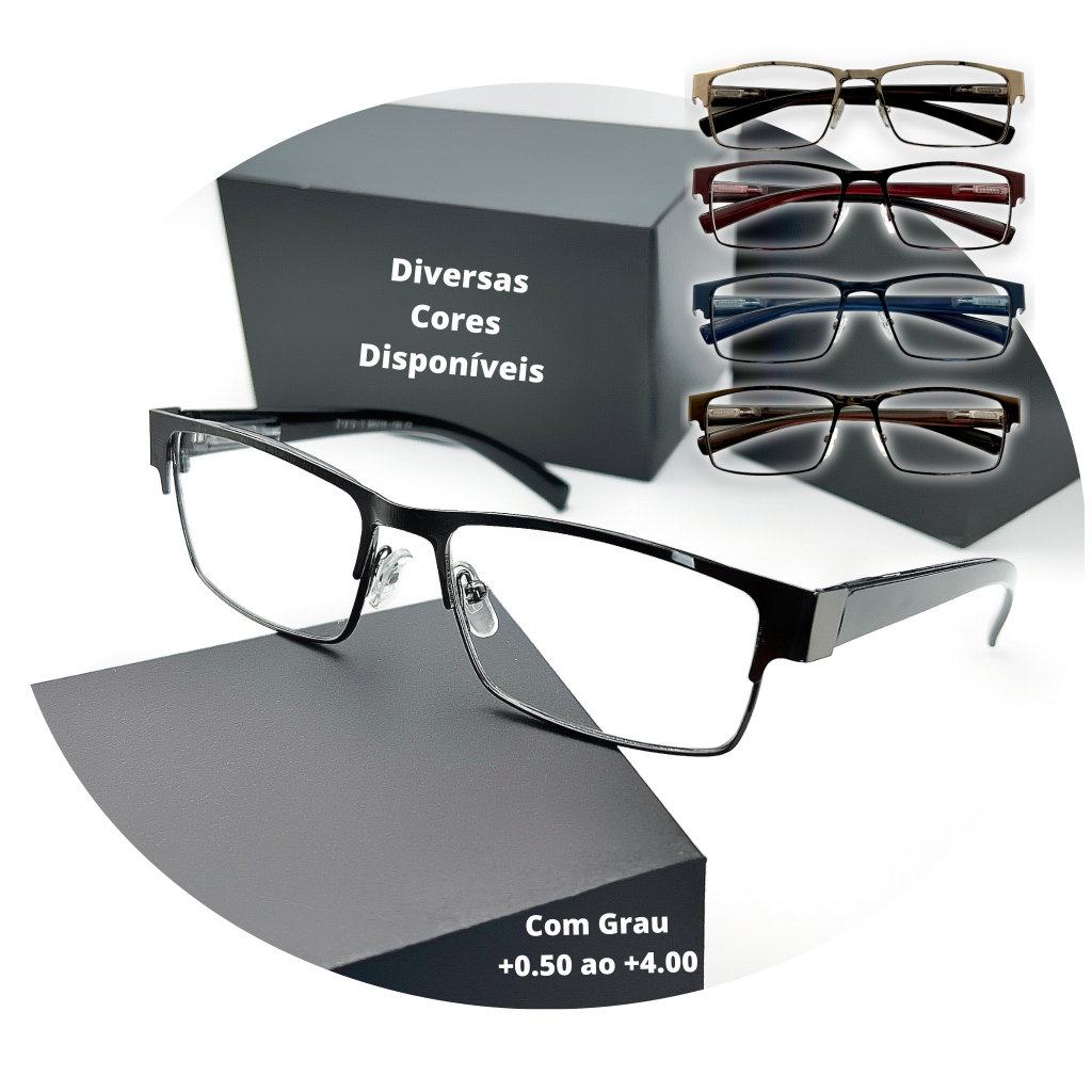 Óculos De Leitura Metal Aço Com Grau Para Perto Descanso Presbiopia Masculino e Feminino Premium