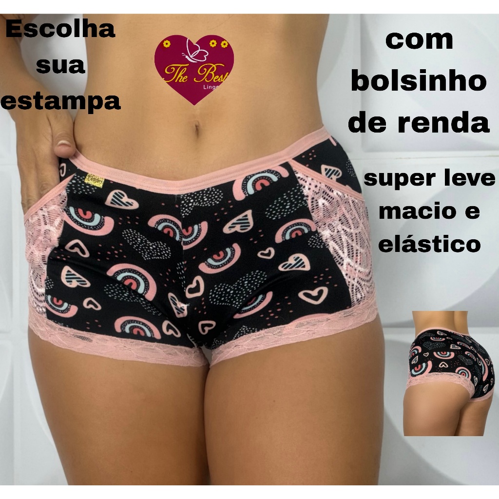 Kit com 3 OU 6 Calcinhas Shortinho com bolsinho de renda short calesson cueca feminina anágua de suede com forro 100% algodão