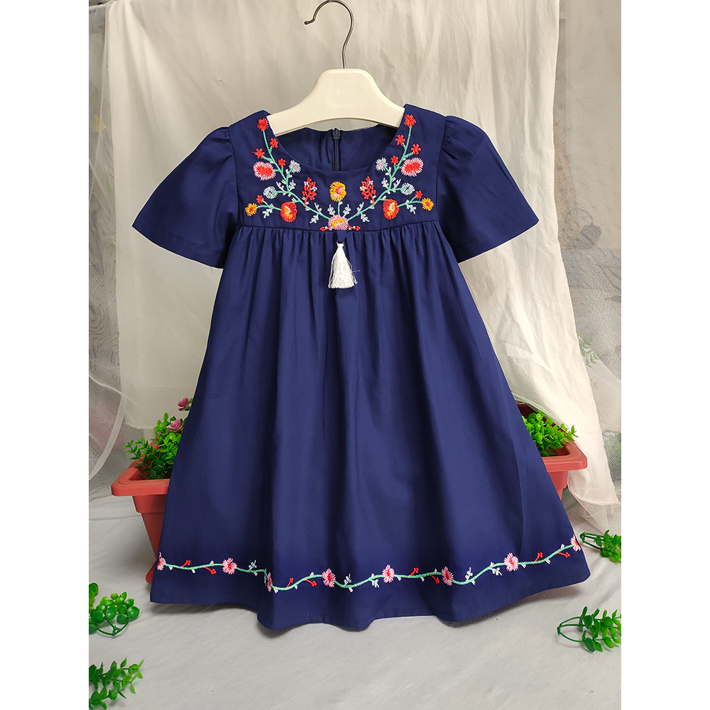 Meninas Toddler De Manga Curta Flores Bordadas De Algodão Casual Vestido De Princesa Para Festa Roupas De Verão Crianças