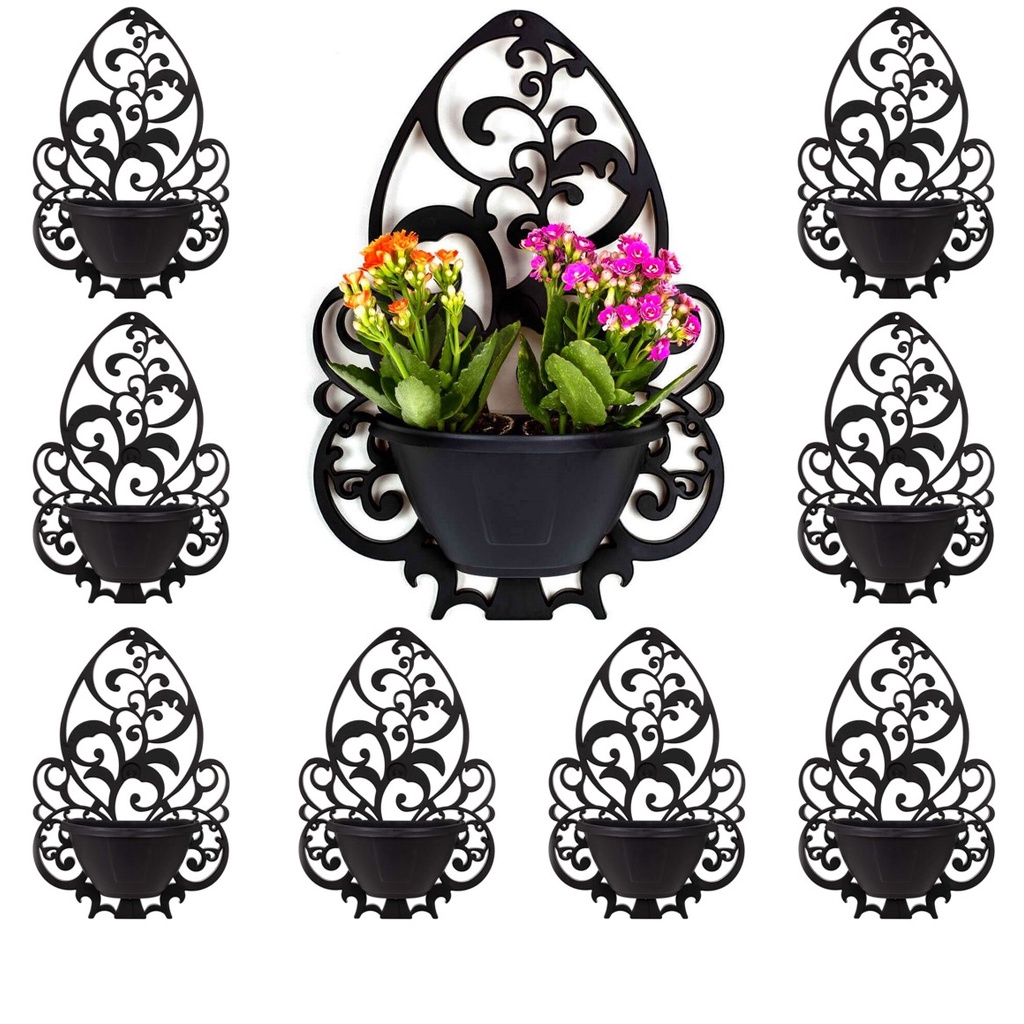 Kit 8 Vaso Arandela de Parede Preto Vaso Decorativo