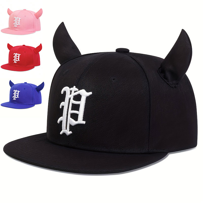 Unisex Gothic Letter P Bordados Ajustáveis Fashion Ox Horn Baseball Chapéu De Boi Primavera Outono Chapéus De Lazer Ao Ar Livre Acessórios De Viagem Para Mulheres Homens