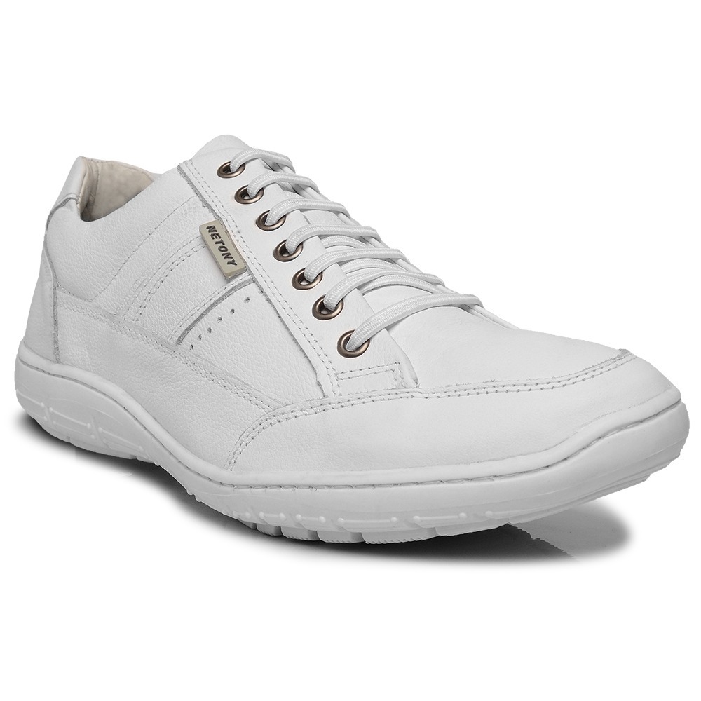 Sapatênis Sapato Casual Branco Em Couro Legítimo Conforto Total Com Palmilha em Gel