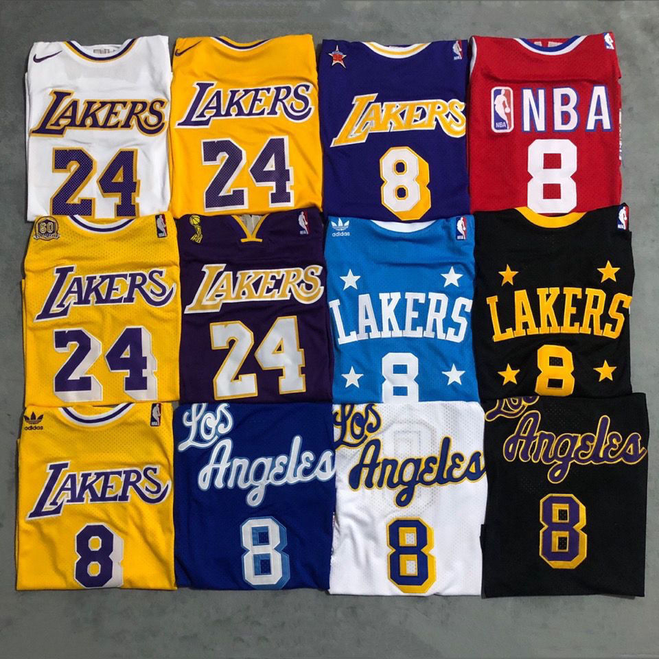 【 10 styles 】 NBA jersey Los Angeles Lakers No . 24 KOBE Camisa De Basquetebol Dourada Roxa