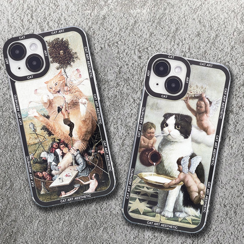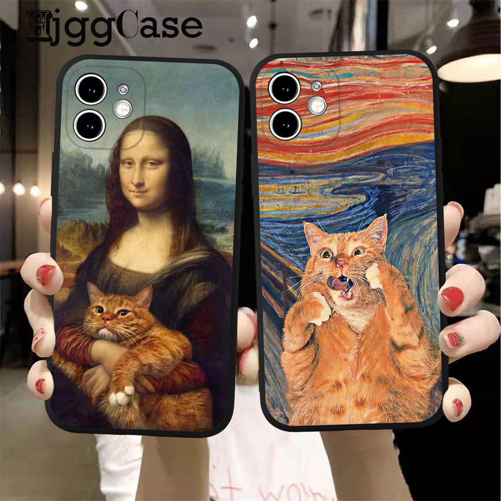 Van Gogh Gustav Klimt Mona Lisa Divertido Gato Arte Funda Capa De Celular Para Iphone 15 14 13 12 11 Pro Max Mini XS X XR 7 8 Plus Traseira 6 6s Reta Silicone