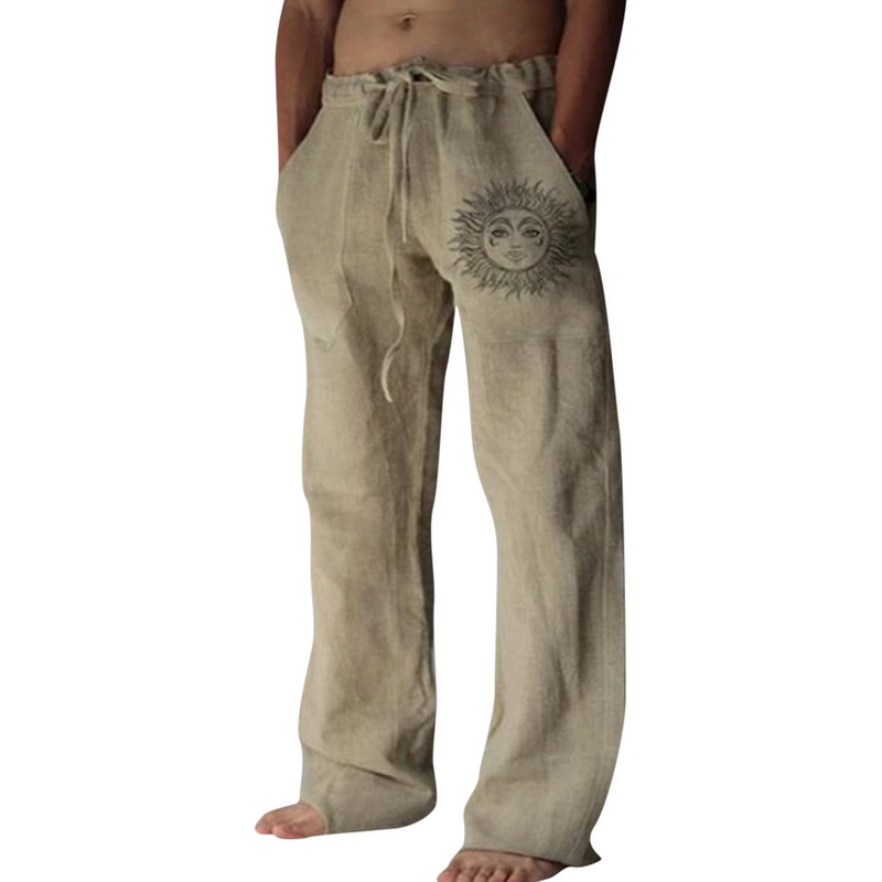 Retro Sun Desig Men'S Summer Calças De Verão Tamanho Superior Impressão Mais Perna Larga Solta Bolsos