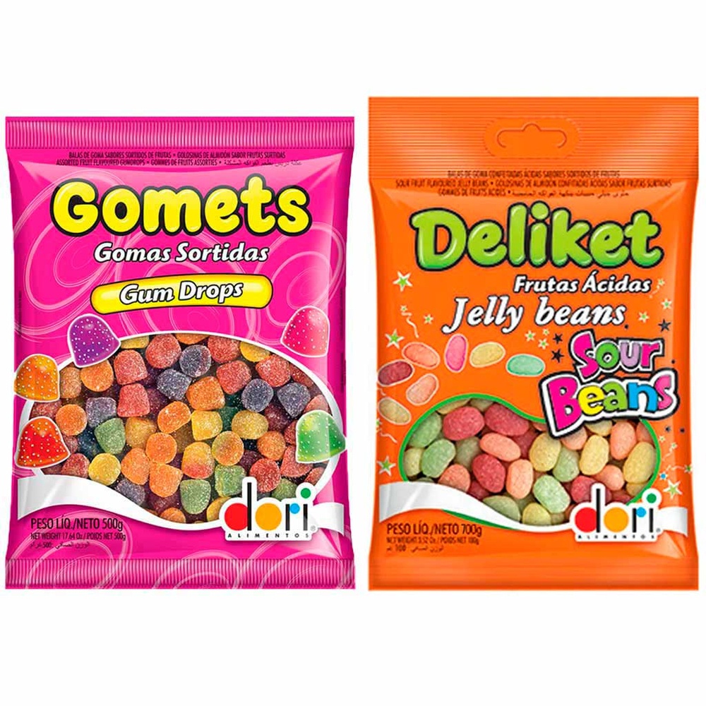 Kit com 2 pacotes da Bala Gomets e Deliket Jelly Beans Ácidas - Dori