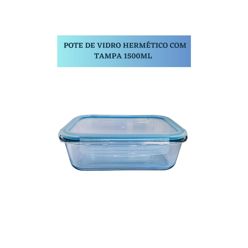 Pote de Vidro Hermético com Tampa 1500ML Retangular Para Microondas Forno Cozinha Marmita Prático Nao vaza 2 Cores