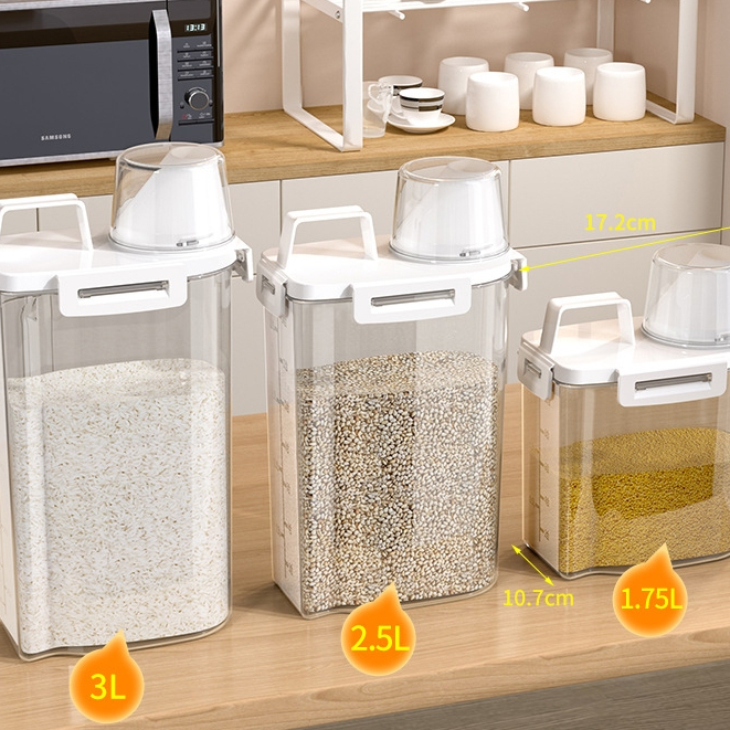 Dispenser para Alimentos 2,5L grãos cereais pote hermético Copo Medidor para Armazenamento de Mantimentos Multiuso BC-11/BC-12/BC-13