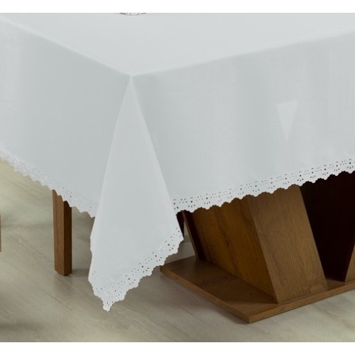 Toalha de Mesa Retangular 6 Lugares Oxford 2,20m x 1,40m Acabamento Lateral 6 Cadeiras - Branca