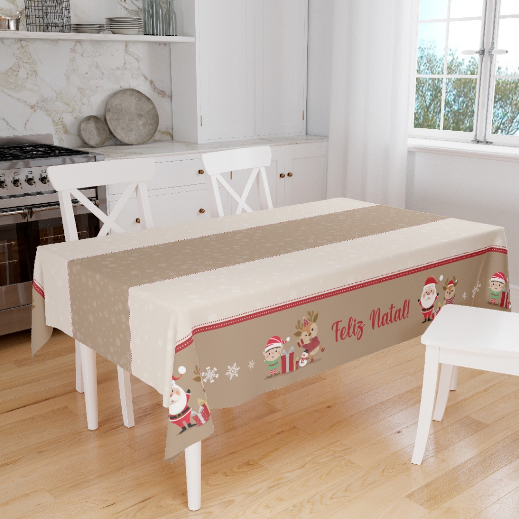 Toalha de Mesa Retangular para 6 e 4 Lugares Natalina Exclusiva Tamanho 190X135cm Feliz Natal