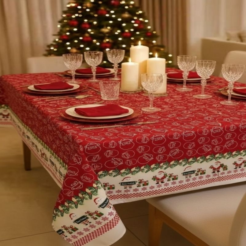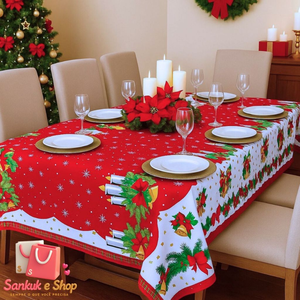 Toalha de Mesa Natal Retangular 4 6 8 10 Cadeiras Redonda Decoração Natalina Tecido Premium Atacado