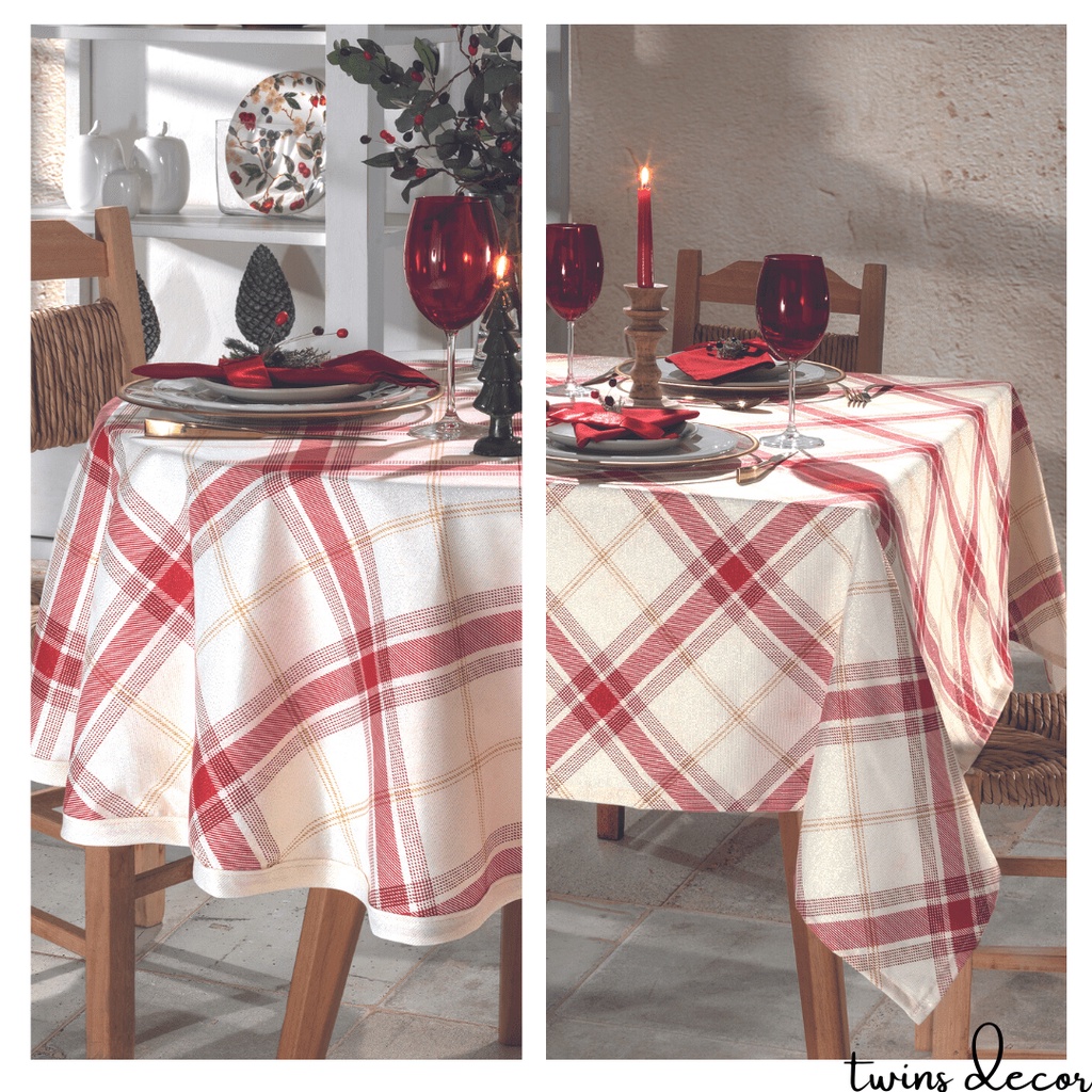Toalha De Mesa Redonda 4 lugares Retangular 6 a 8 Lugares Estampa Estampada Natal Natalina Festas Brilhante Dourado Dourada Xadrez Dohler