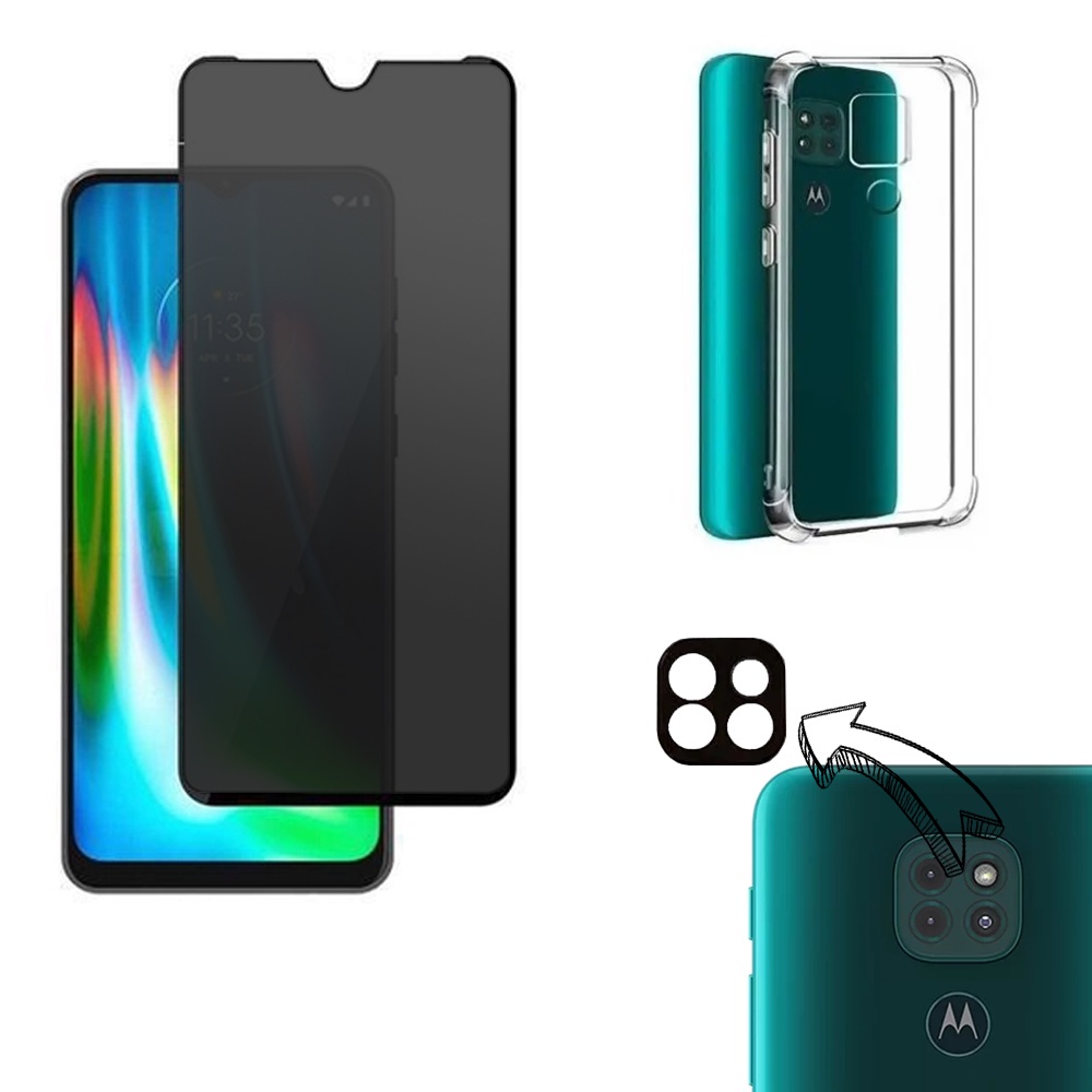 Motorola Moto G9 Play | Película de Privacidade 3D - Capa Capinha Anti Impacto - Película da Câmera 3D